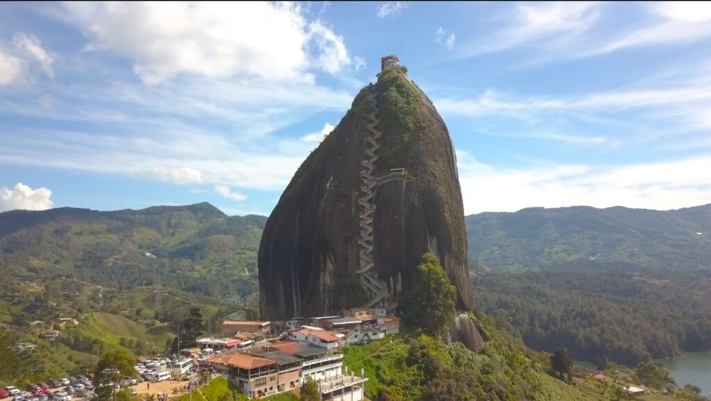 Escursione nei dintorni di Medellín alla scoperta di Guatapé, uno dei villaggi più pittoreschi della Colombia. Le sue case colorate, ornate da zócalos decorativi, creano un mosaico vivace che si specchia sulle acque del lago artificiale. Poco distante sorge la maestosa Piedra del Peñol, un monolite di granito alto oltre 200 metri: chi affronta i suoi 740 gradini viene ricompensato da una vista spettacolare sui laghi e le colline circostanti.